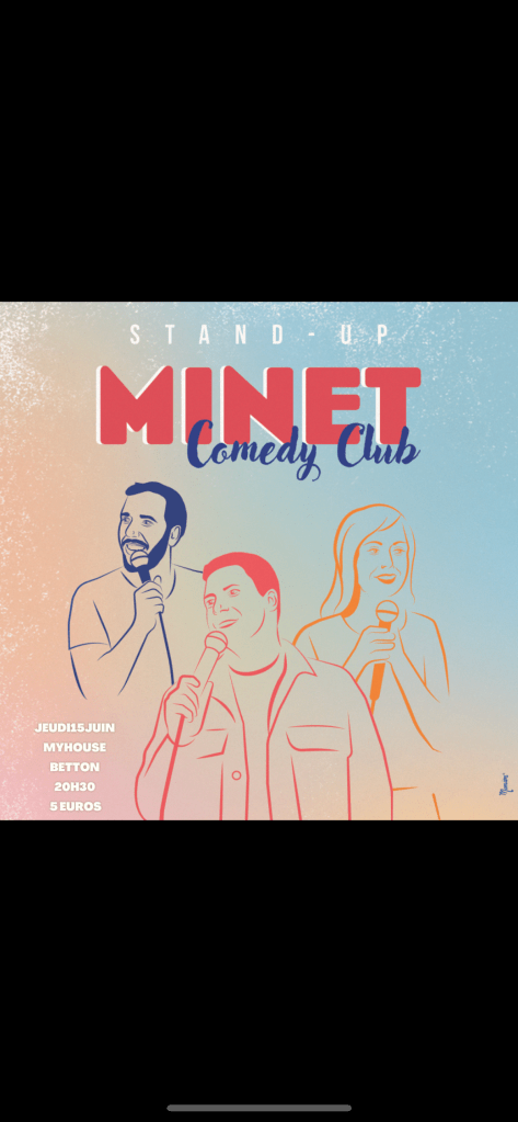 Jeudi 15 juin , Minet Comedy Club a BETTON Publié par enzo leminet le 15 juin 2023 Ce soir rendez-vous au My House de Betton , Bar et Pizzeria; on sera 4 prêts à sortir nos meilleurs blagues Rendez vous ce soir 20h30 , 5 euros la place Partager : Partager sur X(ouvre dans une nouvelle fenêtre) X Partager sur Facebook(ouvre dans une nouvelle fenêtre) Facebook J’aime chargement… Similaire